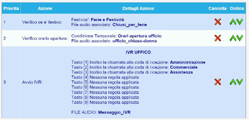 - IVR (vanno definite le regole e va aggiunto il relativo file audio)